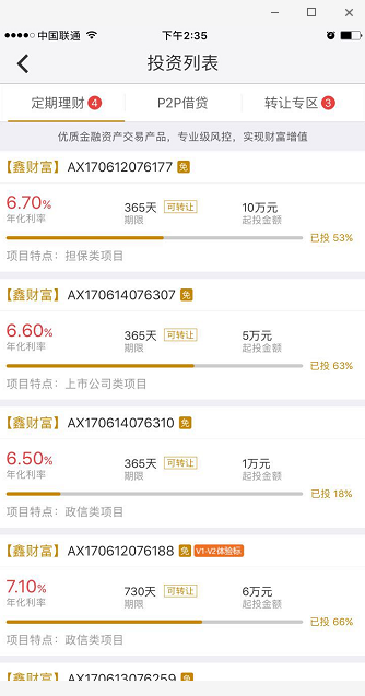 1.点击我要投资查看当前可投资项目,确定后点击进入查看项目详情;