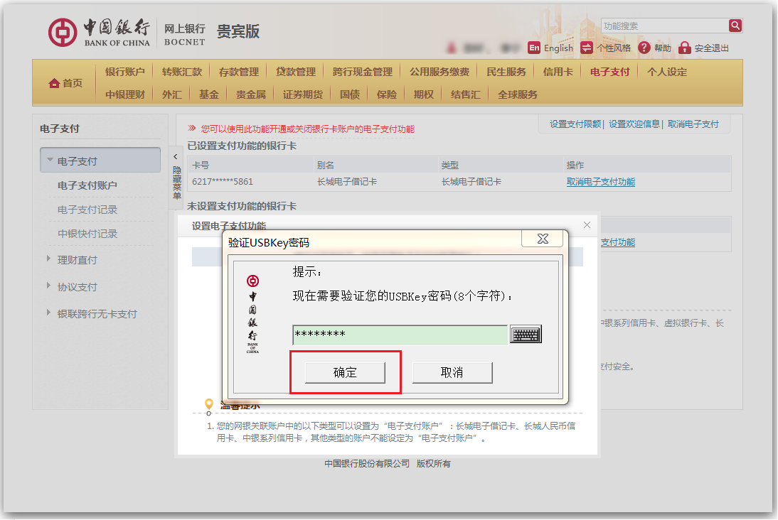 登录中国银行网上银行,开通您要在开金中心绑定的银行卡的电子支付功能: