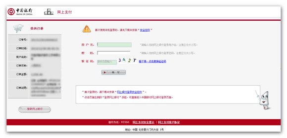 (1)支付时,网银跳转到中国银行支付页面,如下图: