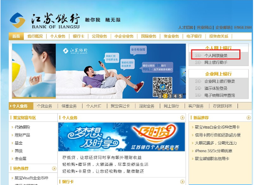 1. 登录网银前选择个人网银登录: