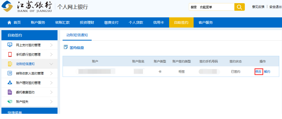 解决办法:请登录江苏银行网银,如下图所示在自助签约->动账短信通知查看当前手机号是否是已更换的新手机号,如果不是,点击更改