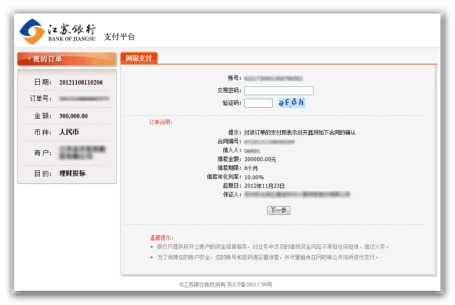 4. 在江苏银行网银支付的第一个页面,交易密码输入框无法输入。