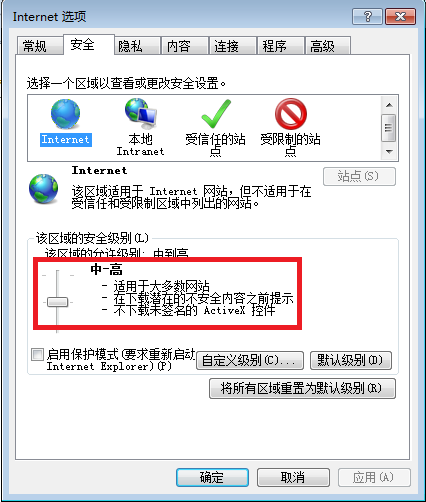 解决办法: 请点击IE浏览器上方菜单栏的“工具”,向下找到“Internet选项”并点击进入,找到上方的”安全”选项卡并点击进入,检查Internet和受信任的站点的安全级别是否为”高”,如果是请改为默认级别或“中-高”级别。之后再次重试支付。