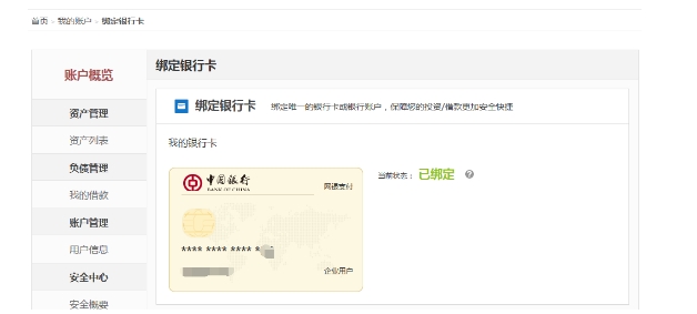 4.绑定成功后,网页跳转至绑定银行卡页面