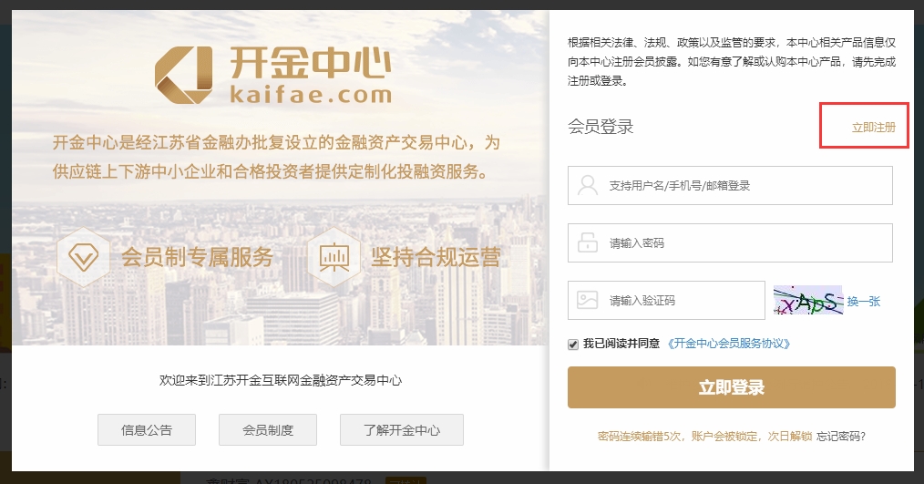 1.登录www.kaifae.com网站,在弹层中点击【立即注册】